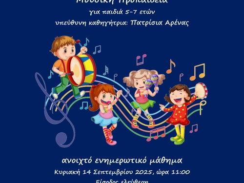 Ανοιχτό μάθημα Μουσικής Προπαιδείας: Κυριακή 14/9/2025, ώρα 11:00, Είσοδος ελεύθερη.
