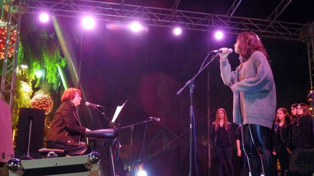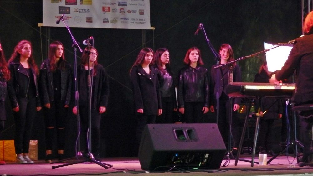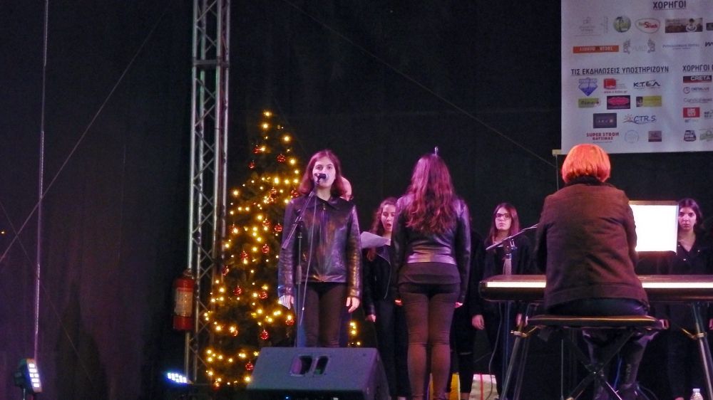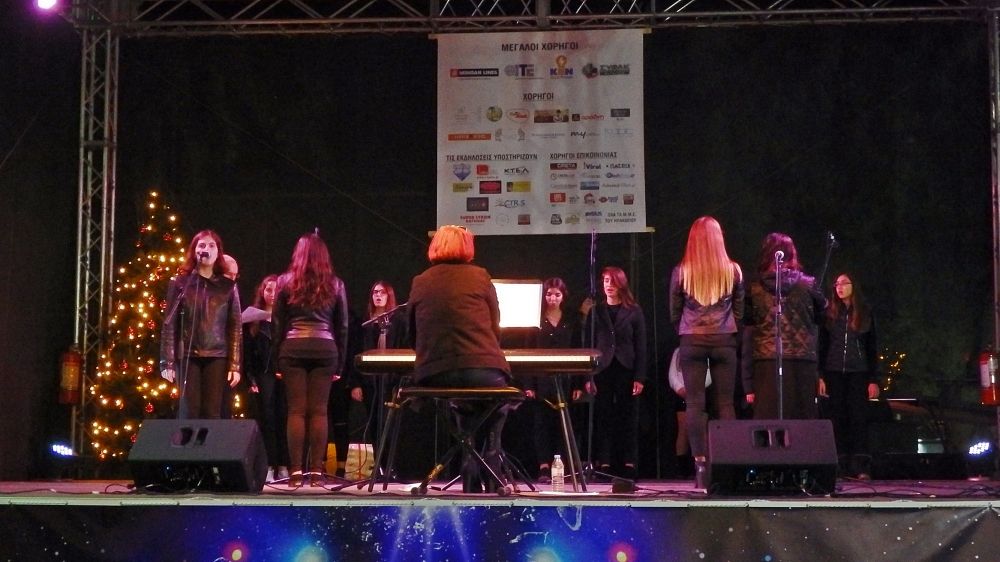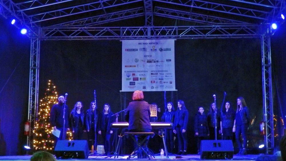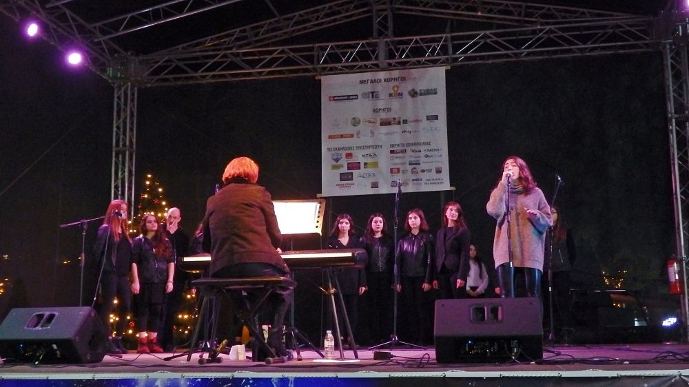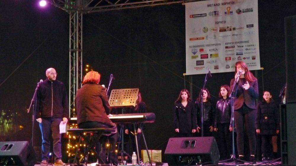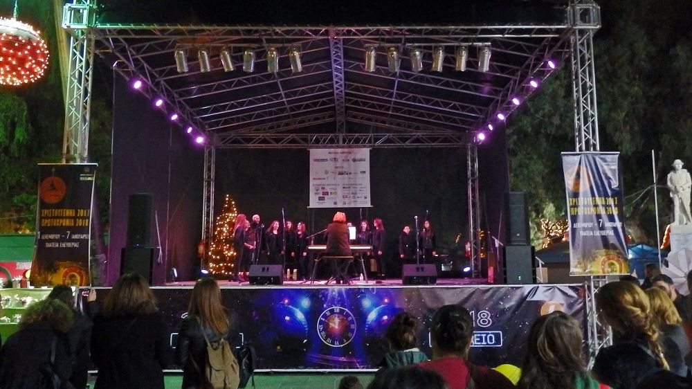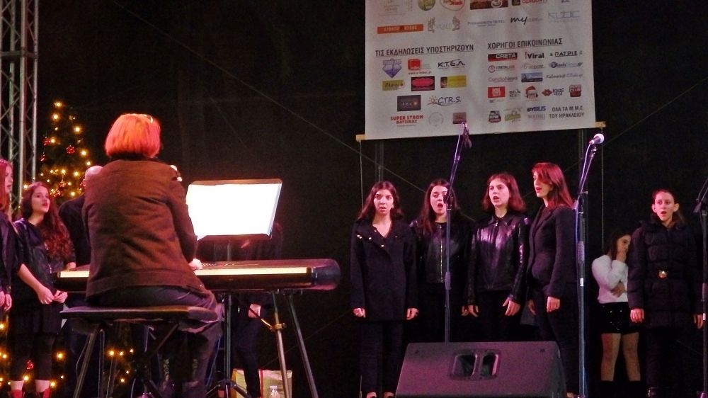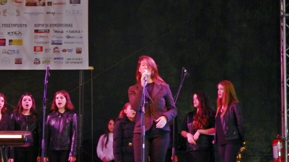 Φωτο-στιγμιότυπα από τη συναυλία που έδωσαν το φωνητικό σύνολο και σπουδαστές των σχολών μονωδίας και έντεχνου τραγουδιού του Σύγχρονου Ωδείου Κρήτης την Παρασκευή 15/12/2017 στην πλατεία Ελευθερίας στα πλαίσια των εκδηλώσεων του «Χριστουγεννιάτικου Κάστρου» του Δήμου Ηρακλείου.