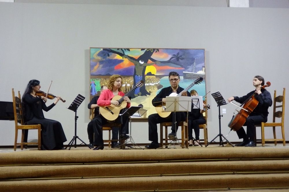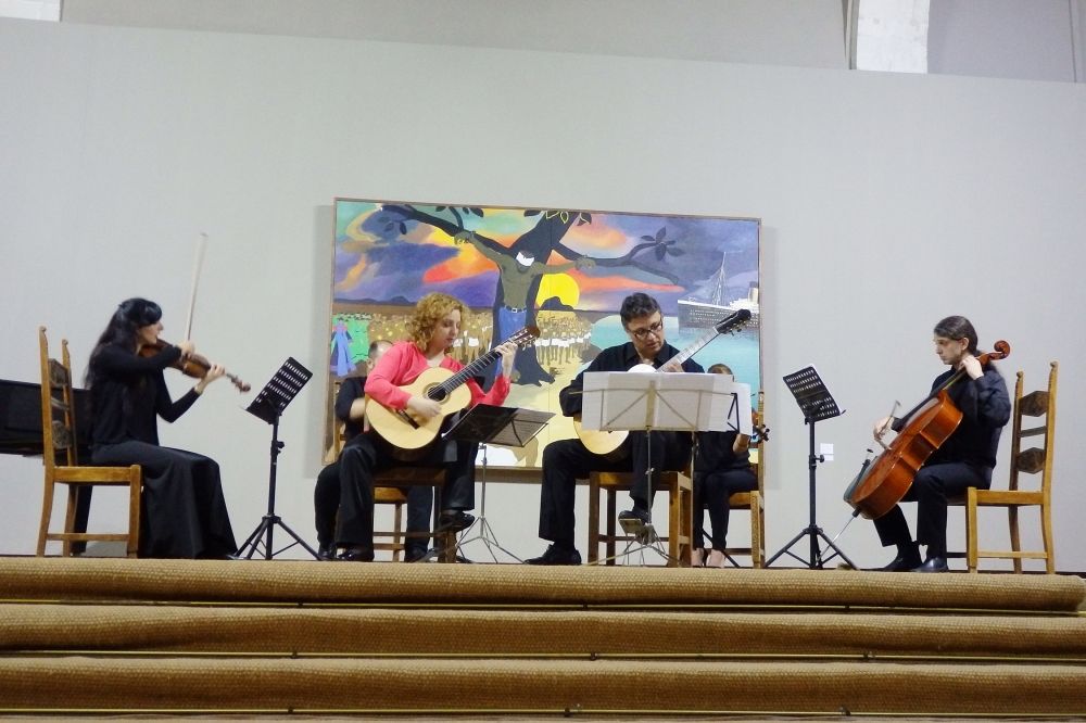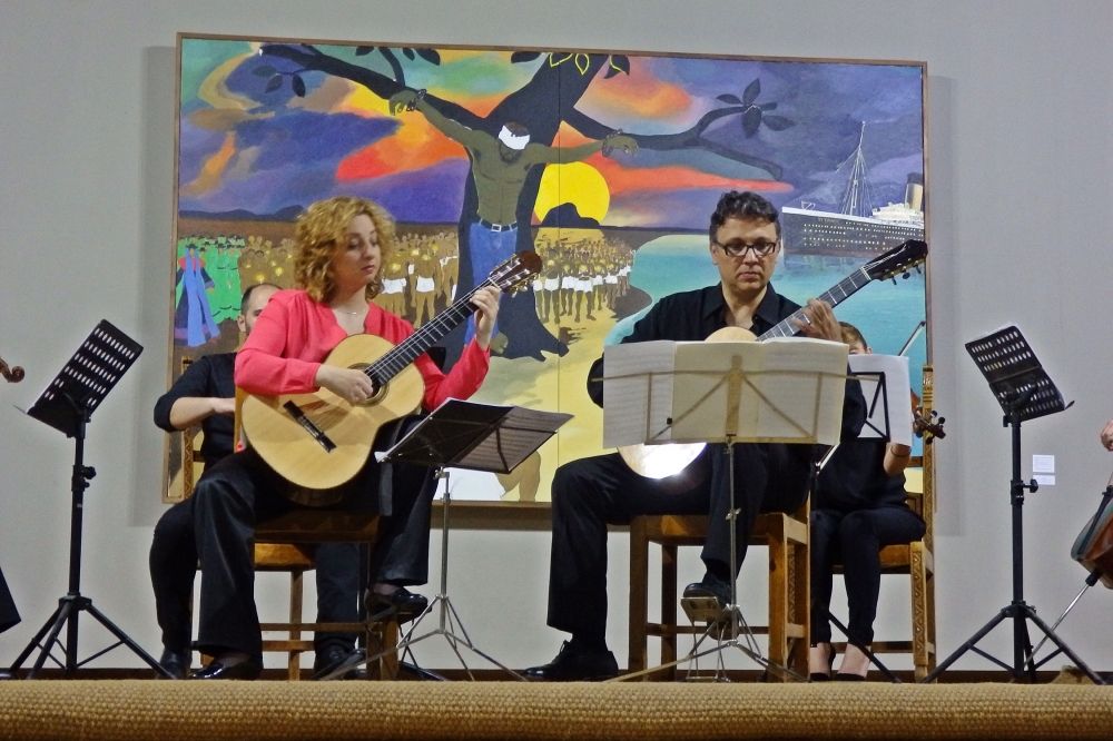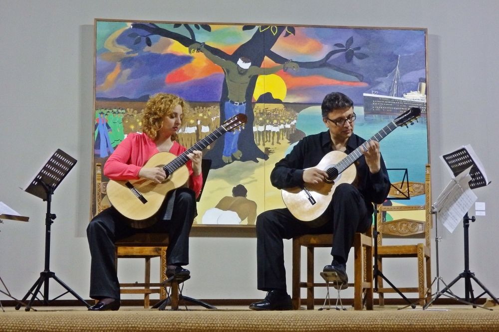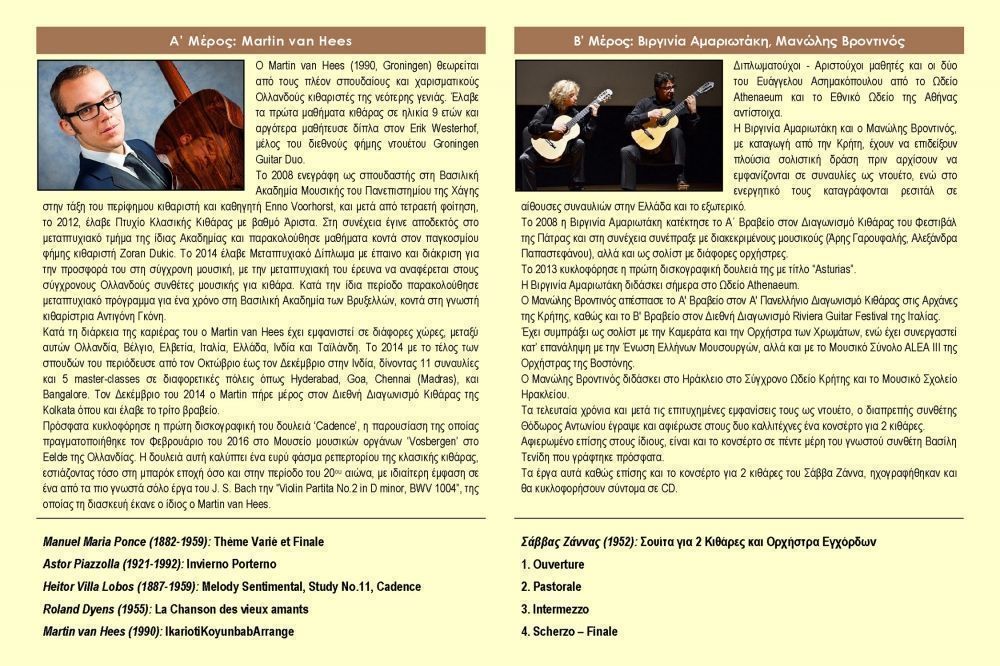Στο δεύτερο μέρος οι σολίστες και εκλεκτοί συνεργάτες του ωδείου Βιργινία Αμαριωτάκη και Μανώλης Βροντινός ερμήνευσαν με τη συνοδεία κουαρτέτου, κονσέρτα για δύο κιθάρες και έγχορδα των Ελλήνων συνθετών Σάββα Ζάννα και Βασίλη Τενίδη.