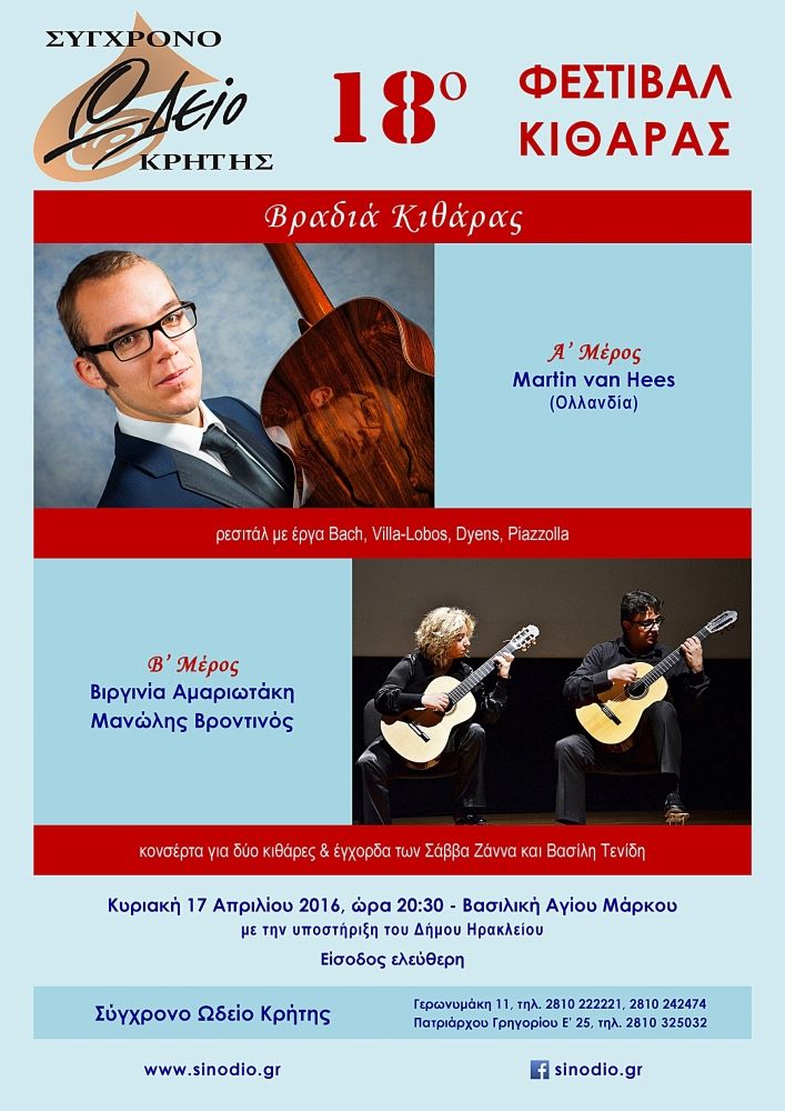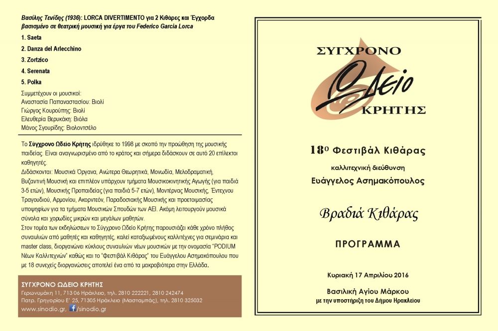 Στιγμιότυπα από το 18ο ΦΕΣΤΙΒΑΛ ΚΙΘΑΡΑΣ που διοργάνωσε 15-17 Απριλίου 2016 το ΣΥΓΧΡΟΝΟ ΩΔΕΙΟ ΚΡΗΤΗΣ με τον διεθνούς φήμης σολίστ και μουσικοπαιδαγωγό Ευάγγελο Ασημακόπουλο.