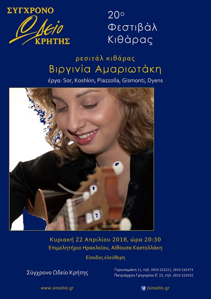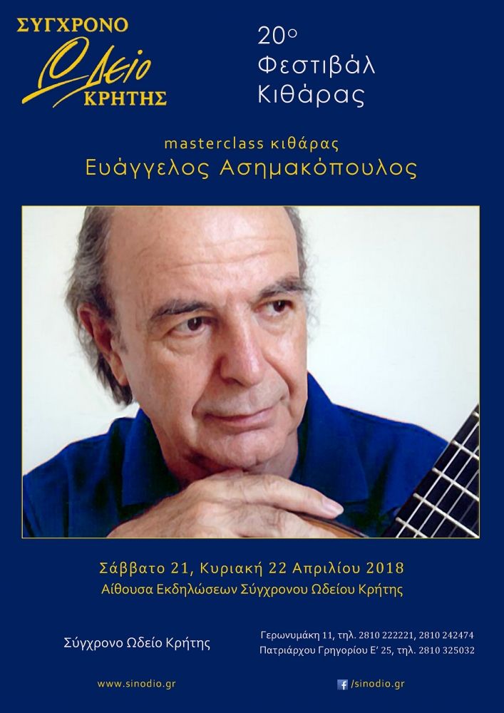 Το Σύγχρονο Ωδείο Κρήτης διοργάνωσε 21 και 22 Απριλίου 2018 το 20ο ΦΕΣΤΙΒΑΛ ΚΙΘΑΡΑΣ με τον διεθνούς φήμης σολίστ και μουσικοπαιδαγωγό Ευάγγελο Ασημακόπουλο.