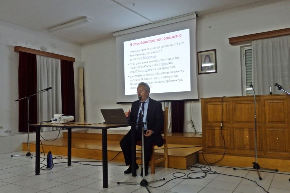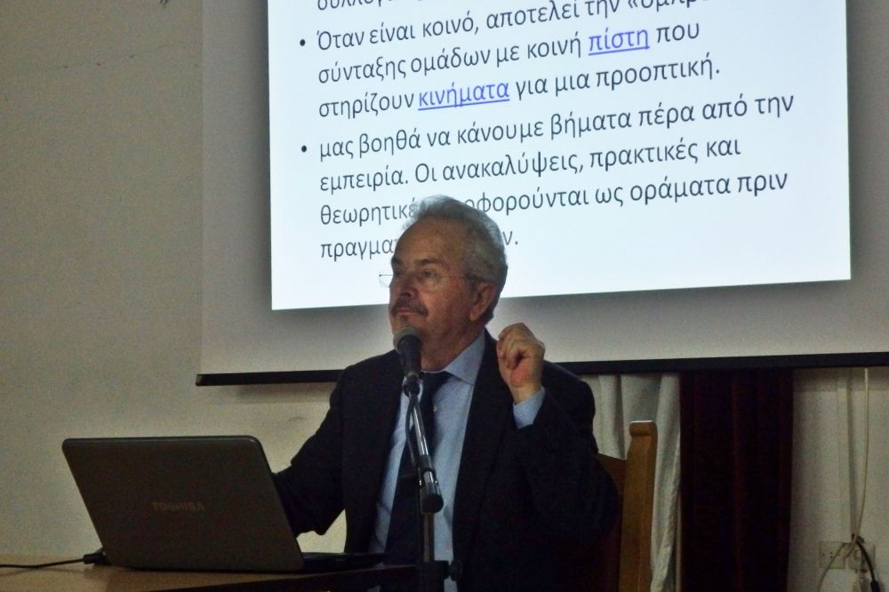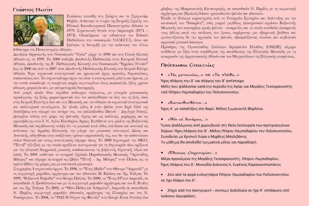 Η εκδήλωση ξεκίνησε με ομιλία του διαπρεπούς επιστήμονα-ιατρού και πρωτοψάλτη Γεωργίου Ναούμ με τίτλο «Ψάλτης στον 21ο αιώνα. Όνειρο ή Όραμα;»