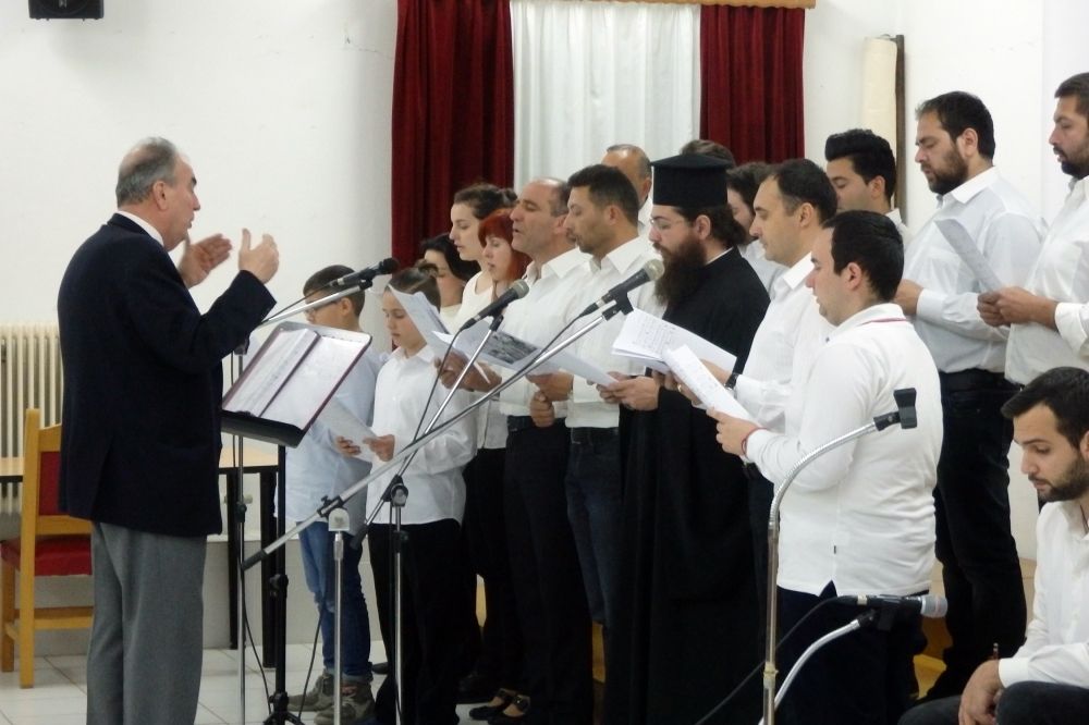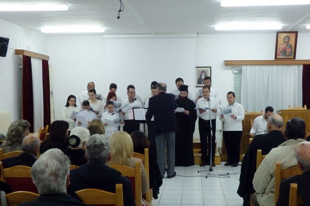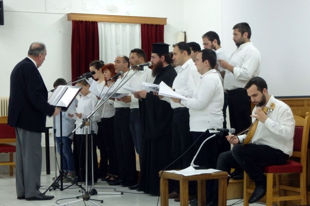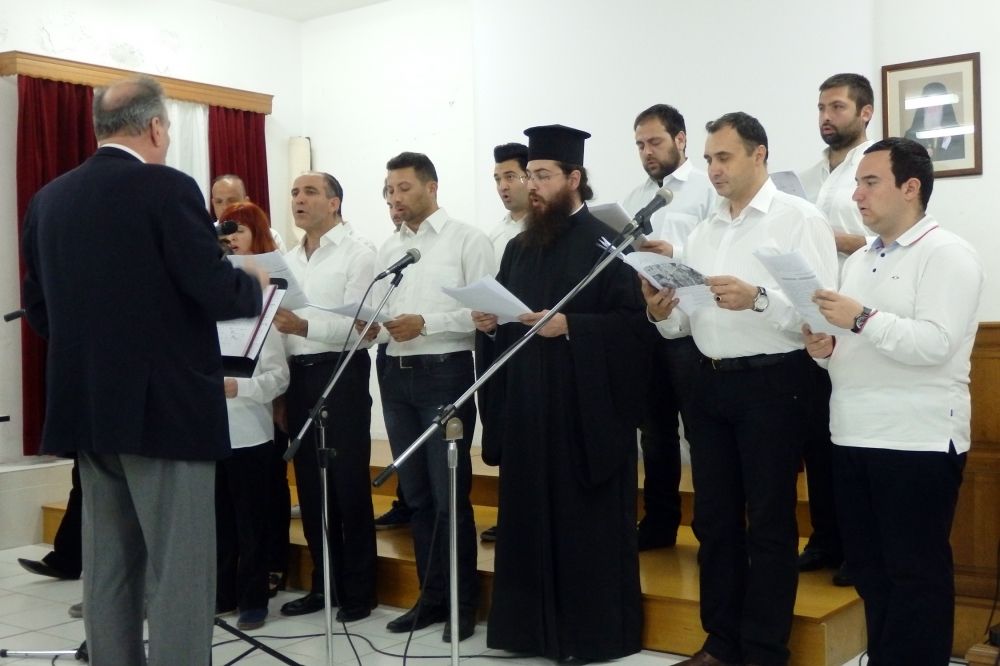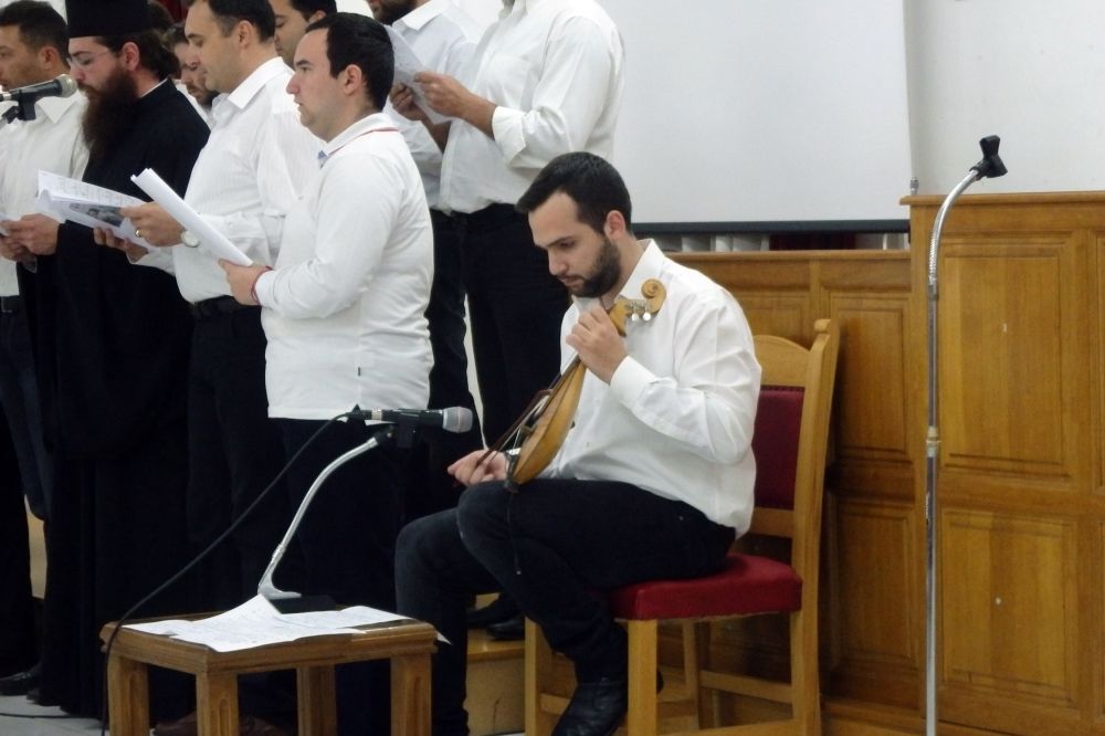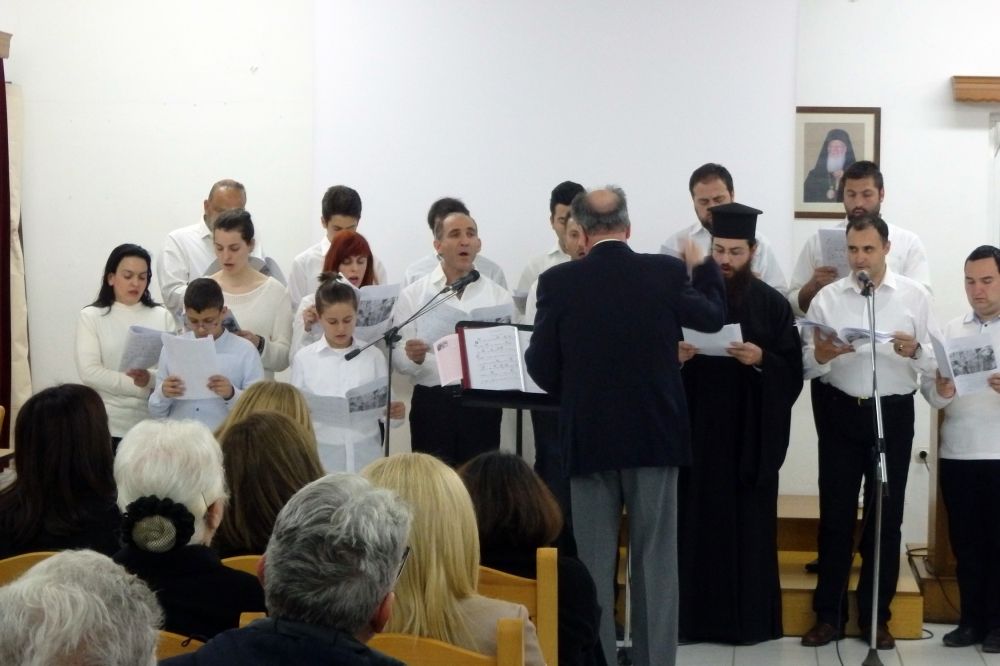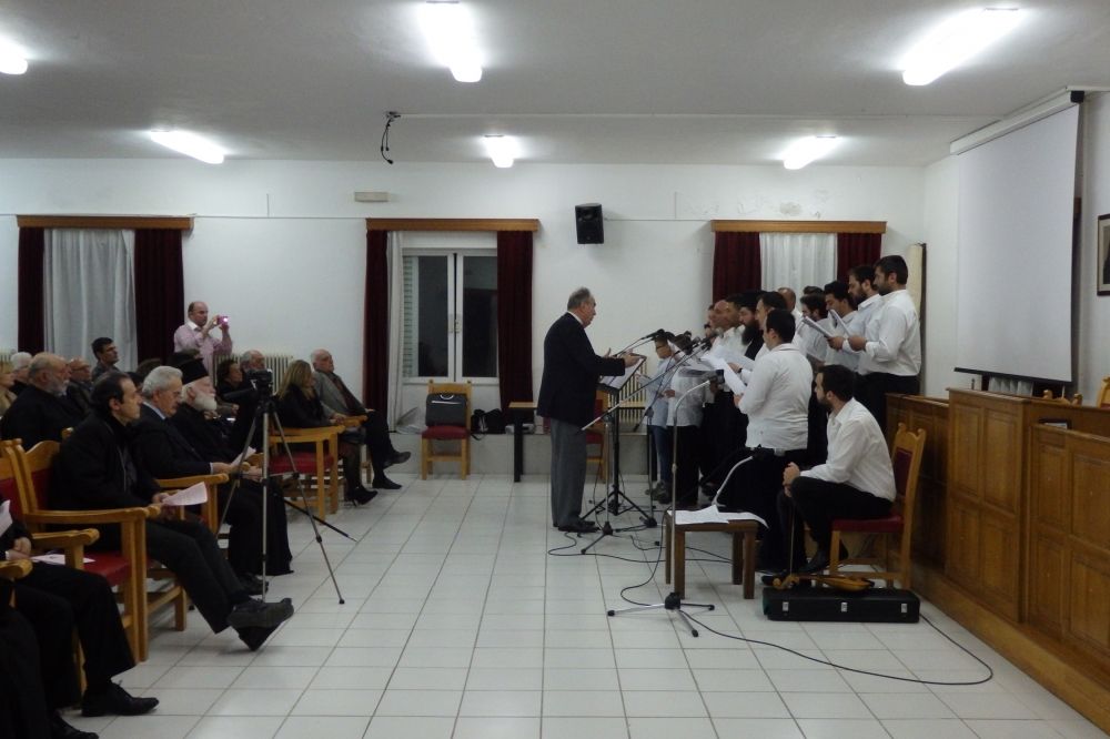 Στη συνέχεια ύμνους απέδωσε η χορωδία των σπουδαστών της Σχολής Βυζαντινής Μουσικής του Σύγχρονου Ωδείου Κρήτης υπό τη διεύθυνση του πρωτοψάλτη και καθηγητή της σχολής Ιωάννη Δαμαρλάκη.